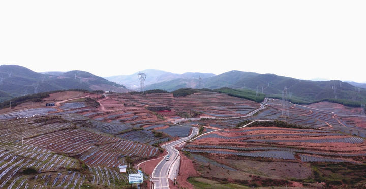 这是2024年5月2日拍摄的四川省凉山州昭觉县解放沟镇火普村蓝莓基地一角(无人机照片)。新华社记者 尹恒 摄