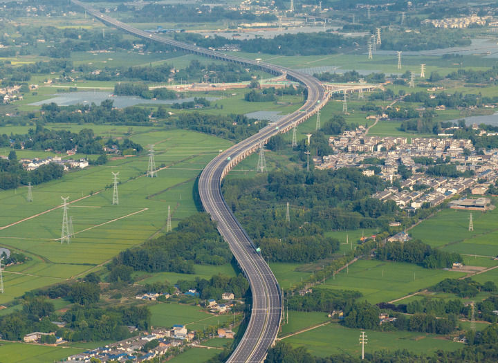 俯瞰四川天府新区至邛崃高速公路一角(2024年7月2日摄,无人机照片)。新华社记者 江宏景 摄