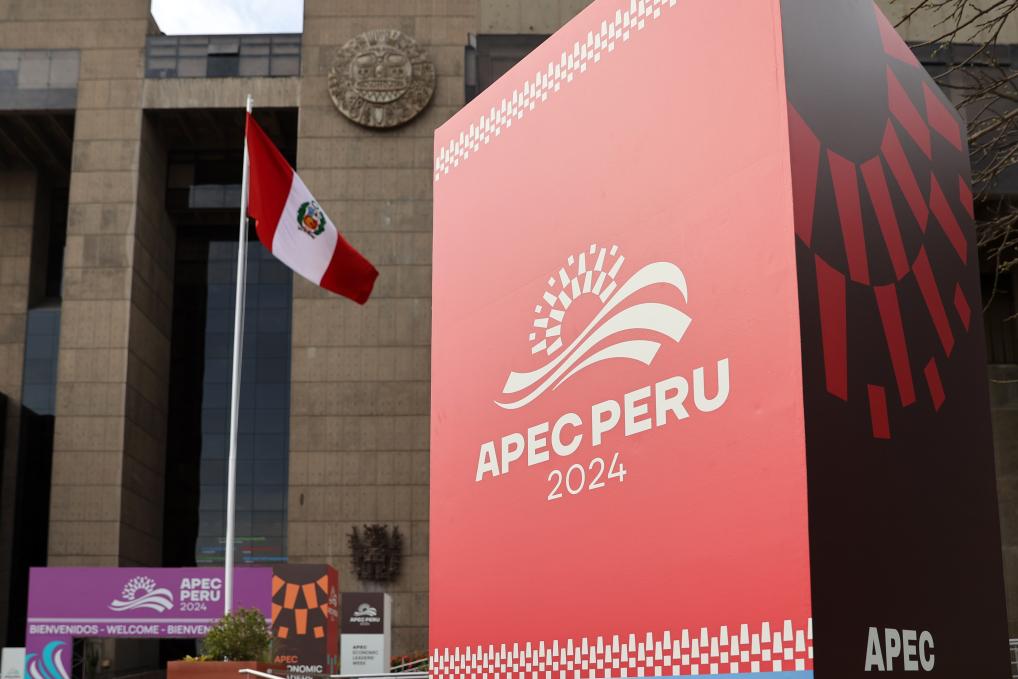 这是11月10日在秘鲁首都利马拍摄的2024年亚太经合组织会议标识。 新华社记者 李木子 摄