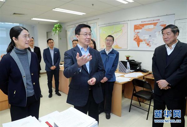 1月8日,中共中央政治局常委、国务院副总理韩正到国家能源局调研并主持召开座谈会。这是韩正来到中国核电发展中心,了解核电发展现状、自主创新和核心技术攻关、安全运行等情况。 新华社记者 刘卫兵 摄