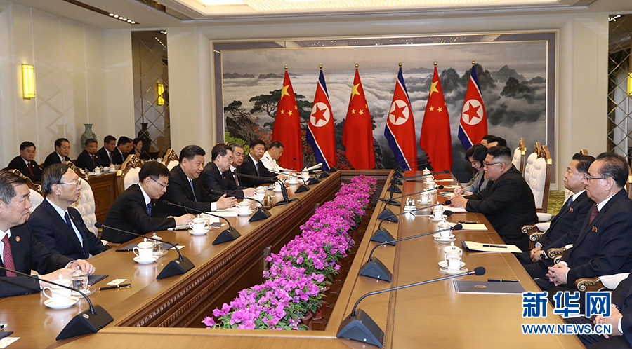 新华社平壤6月20日电 6月20日,中共中央总书记、国家主席习近平在平壤锦绣山迎宾馆同朝鲜劳动党委员长、国务委员会委员长金正恩会谈。双方一致同意,在新的历史起点上,中朝双方愿不忘初心、携手前进,共同开创两党两国关系的美好未来。