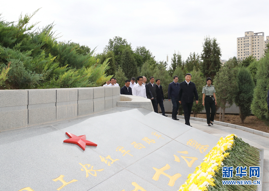8月20日上午,中共中央总书记、国家主席、中央军委主席习近平来到甘肃省张掖市高台县,瞻仰中国工农红军西路军纪念碑和阵亡烈士公墓,向西路军革命先烈敬献花篮,并参观了中国工农红军西路军纪念馆。 新华社记者 谢环驰 摄