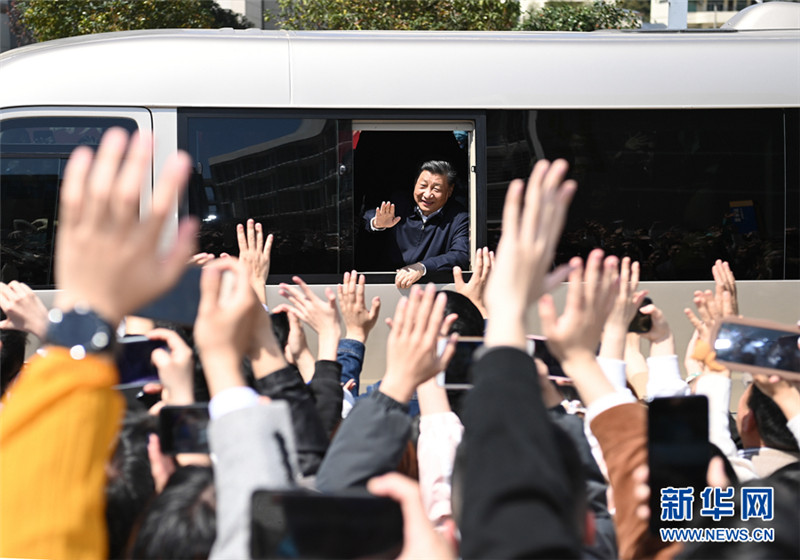3月22日至25日,中共中央总书记、国家主席、中央军委主席习近平在福建考察。这是25日上午,习近平在福州闽江学院考察时,向师生们挥手致意。 新华社记者 王晔 摄