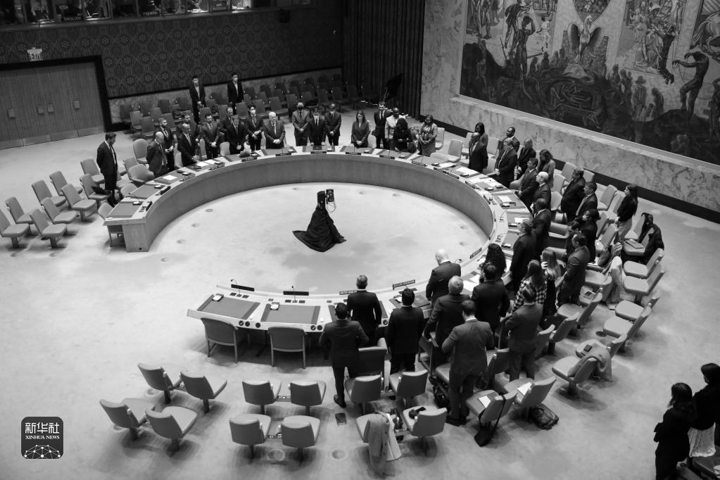 11月30日,在位于纽约的联合国总部,联合国安理会为江泽民逝世默哀一分钟。联合国安理会11月30日为江泽民同志逝世举行默哀仪式。新华社记者 谢锷 摄