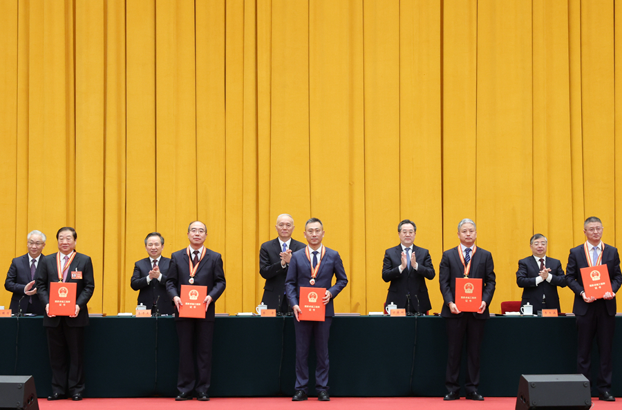 1月19日,“国家工程师奖”表彰大会在北京召开。中共中央政治局常委、党和国家功勋荣誉表彰工作委员会主任蔡奇出席表彰大会并讲话。中共中央政治局常委、国务院副总理丁薛祥出席表彰大会并传达习近平重要指示。新华社记者 姚大伟 摄