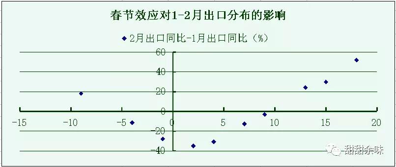 根据上表,得出春节效应对1-2月出口分布影响的分析图如下: