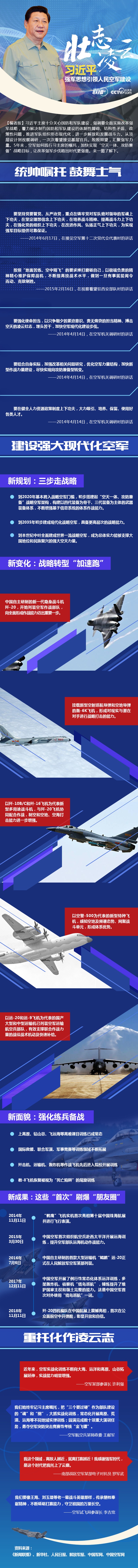 5年前的4月14日,中共中央总书记、国家主席、中央军委主席习近平专程到空军机关调研空军建设和军事斗争准备,代表党中央、中央军委向空军全体官兵致以诚挚的问候,强调要加快建设一支空天一体、攻防兼备的强大人民空军,为实现中国梦、强军梦提供坚强力量支撑。