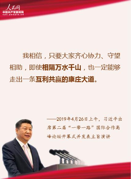 7、共建“一带一路”,关键是互联互通。我们应该构建全球互联互通伙伴关系,实现共同发展繁荣。我相信,只要大家齐心协力、守望相助,即使相隔万水千山,也一定能够走出一条互利共赢的康庄大道。
