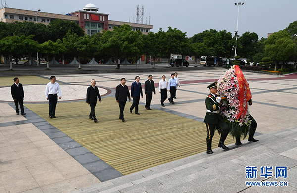 5月20日,习近平总书记来到江西考察调研,调研中前往赣州市于都县向中央红军长征出发纪念碑敬献花篮。