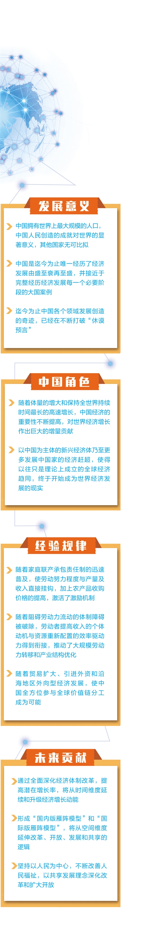 中华人民共和国已经走过70年的光辉历程,经济发展有前30年的探索及其教训,也有后40年的创新及其经验。无论是走过的弯路还是取得的成功,在知识意义上都是宝贵的财富,值得我们自己珍视,也应该贡献给正在进行同样探索的其他发展中国家,并且值得写入发展经济学的最新版本。根据已经提炼的智慧,按照既定的方向和目标,依据相同的改革开放逻辑和路径,中国仍将继续进行实践探索,争取对世界作出新的更大的贡献。