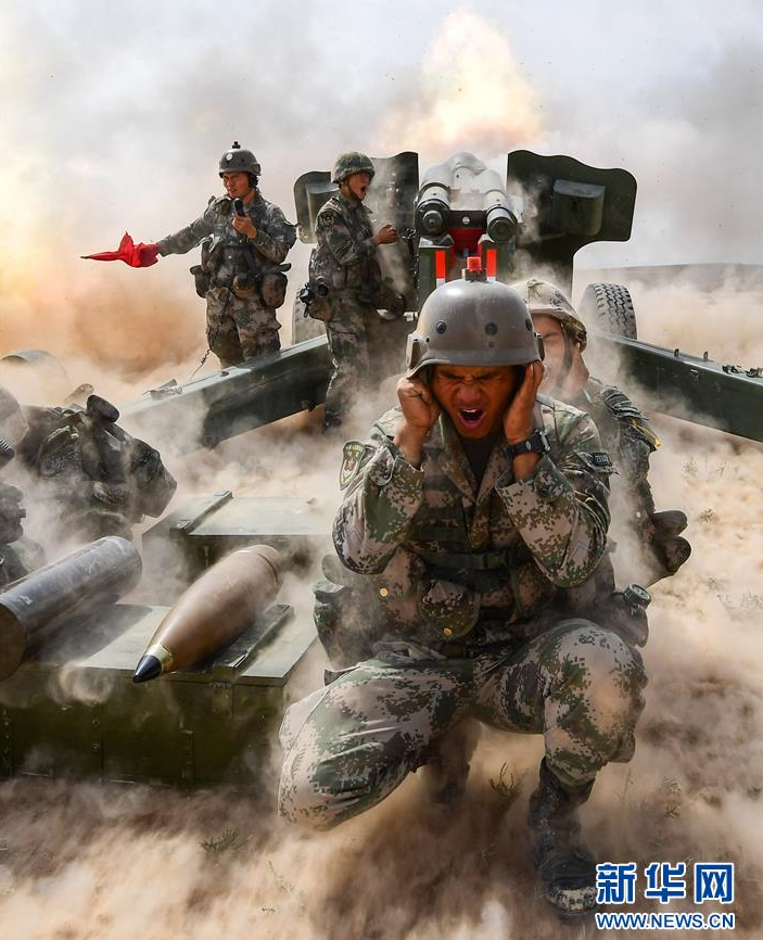 “火力-2017·青铜峡”基地化训练中,红军参演炮兵部队——第71集团军某炮兵旅加榴炮进行昼间实弹射击(2017年9月24日摄)。 新华社发(彭希 摄)