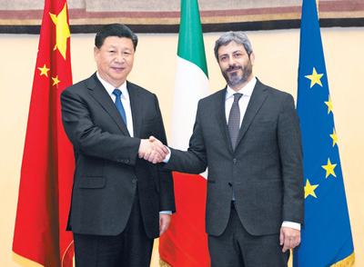 3月22日,国家主席习近平在罗马会见意大利众议长菲科。新华社记者 王晔 摄