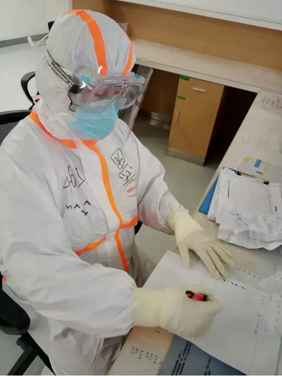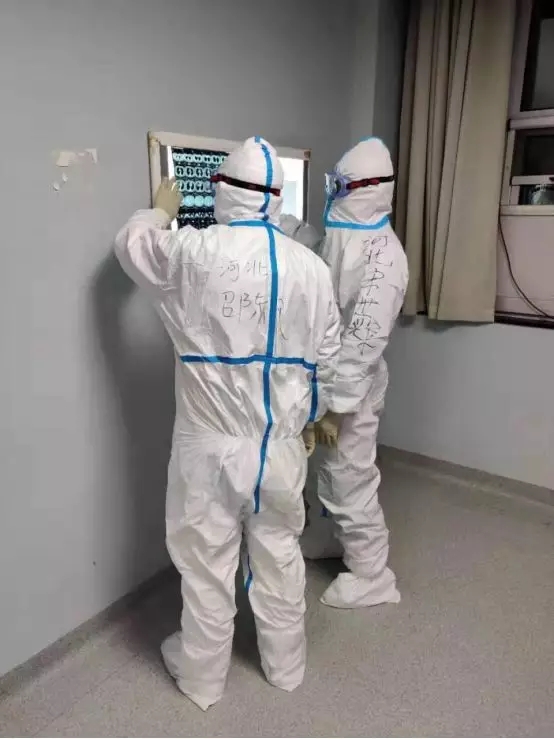我也经常会在病房里被一些小小的瞬间感动到。我觉得有时候病人真的是挺可爱的,我就记得那时候那个96年的那个年轻小伙子就看着我们的隔离服,他说我每天都看你们全部的人穿成这个样子,我都分不出来你们谁是谁啊,然后他就拿那个记号笔在我们衣服后面写“平安喜乐”。他还给我们拍照,然后隔着那个隔离病房从窗户里透过来给我们点赞,你知道吗?真的让你觉得很温暖呐。
