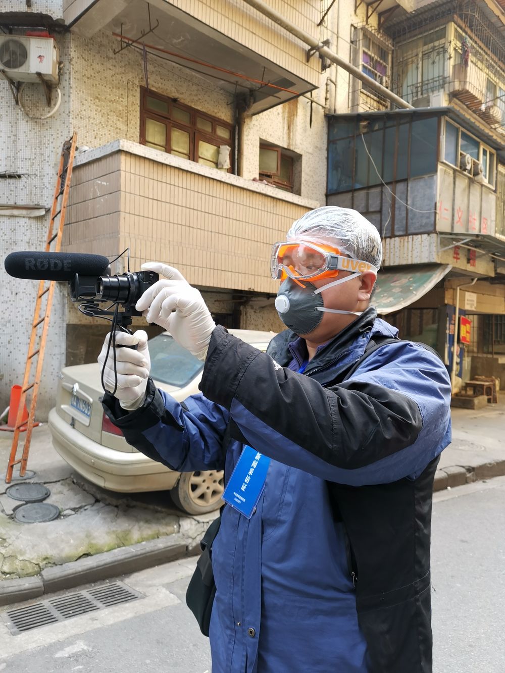 每次出门采访都如临大敌:先换好外出的衣裳、戴好医用手套、戴好护目镜,然后再小心翼翼地在脸上加上一个或两个口罩,在门口换上出门的鞋,最后再背上采访设备——每次做完这些的时候,作为胖子的我身上已经开始冒汗并且气喘吁吁。如果要去医院采访,有时候还要再穿上一件防护服。这样的装备,出门走一圈其实已经很难受了,而我还要隔着不断产生雾气的护目镜拍照,要不断地移动、寻找最好的拍摄角度和位置,采访的时候更要记下一个个口罩后面的名字、故事......这样的采访状态对我而言,从未曾经历过——多年前,我曾在利比亚做过战地记者,也曾被武装分子用枪指着脑袋,但这次在武汉,我不知道那些危险的“敌人”究竟藏在何方,也许就在无处不在的空气里!