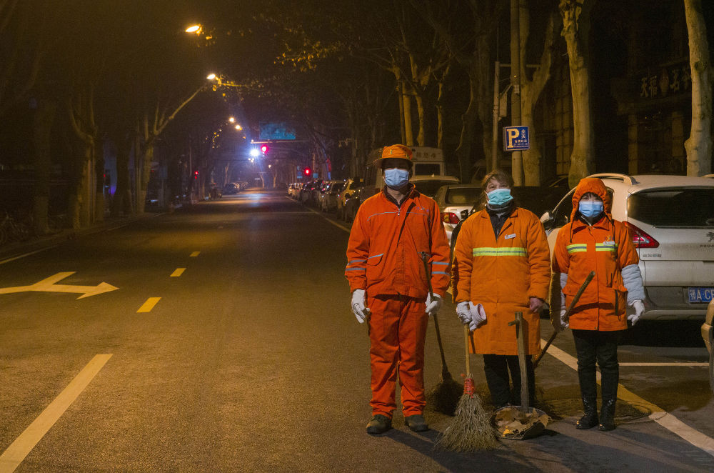 ↑ 2月3日清晨,三位坚守岗位的环卫工人。