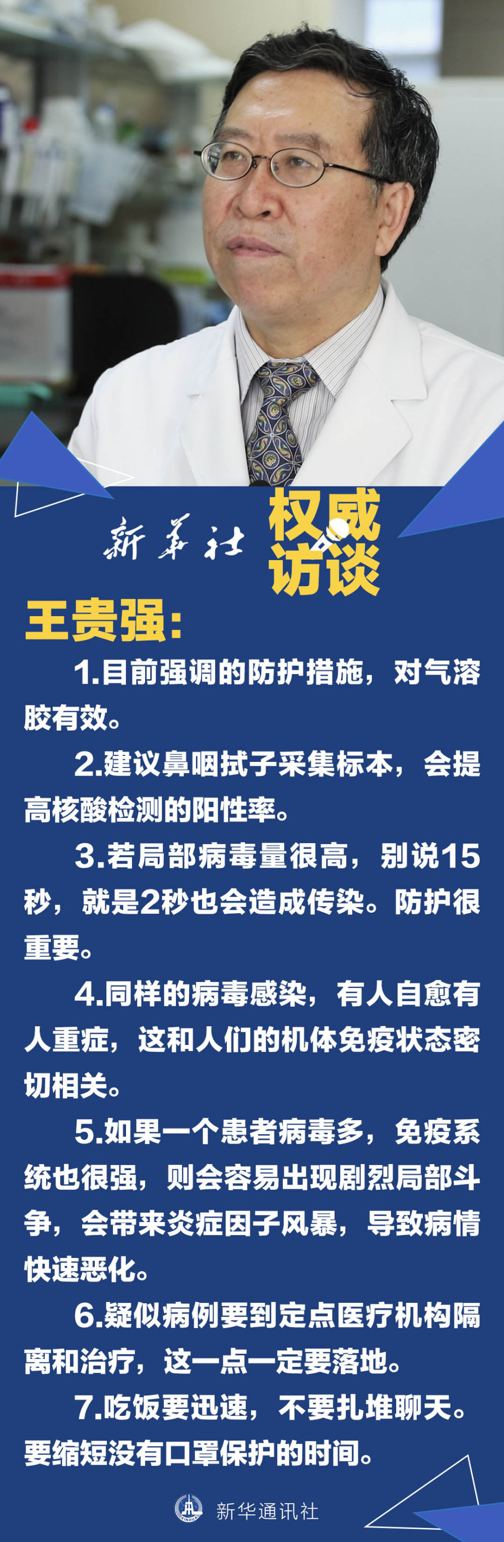 王贵强:医生在疫情面前冲在第一线,是义不容辞的责任,没有任何理由推脱,尤其是感染科医生。借此机会对全国感染科同仁道一声感谢,希望各位保护好自己。