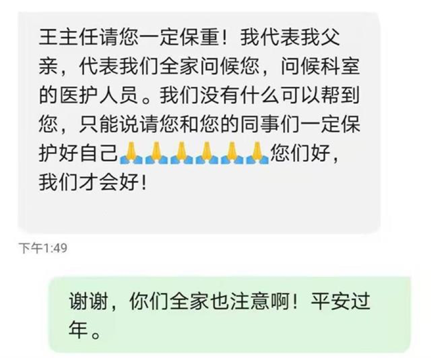回到家里,意外收到了之前一位患者发过来的加油短信,简单的几句话,让他感觉十分温暖,充满力量。