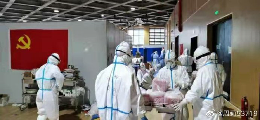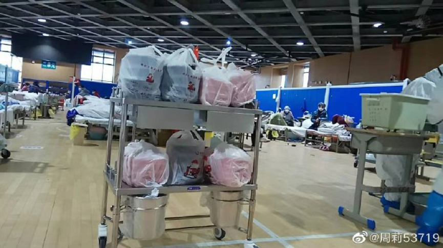 网民“周莉53719”是一名新冠肺炎疑似患者,在医院等待核酸检测结果,她的丈夫住在武汉方舱医院进行隔离。2月11日,她在微博上留言说:“方舱医院在有条不紊地紧张工作着,真的感谢白衣天使们,你们是最美的逆行者!加油!”方舱医院里医务人员的盒饭上也贴上了不少暖心的小纸条,上面写着“医者仁心,医者雄心”“召必回,回必战,战必胜!辛苦了!”