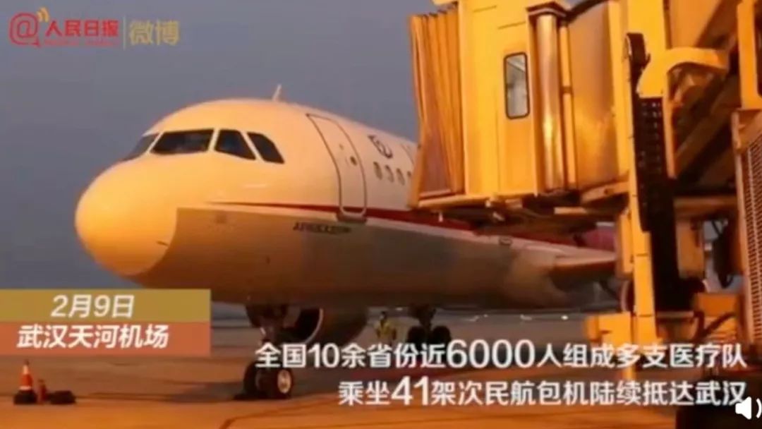 2月9日,41架包机将近6000名医护人员送到武汉天河机场,这是疫情发生以来,抵达武汉的医疗队人数最多的一天。