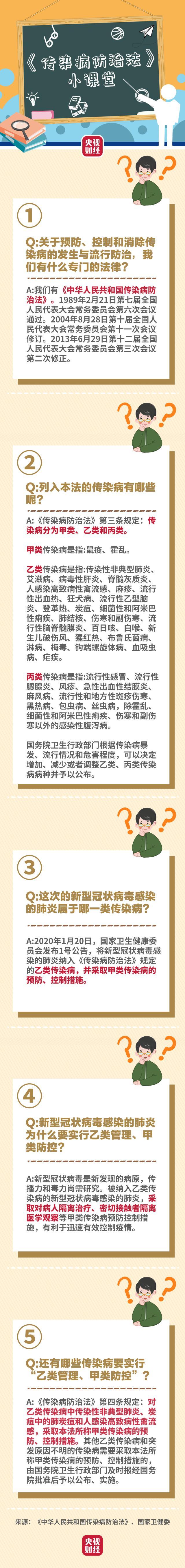 1月20日,国家卫生健康委员会发布1号公告,决定将新型冠状病毒感染的肺炎纳入法定传染病乙类管理,并采取甲类传染病的预防、控制措施。疫情之下,如何做好传染病防治?在我国传染病分几类?甲类、乙类传染病分别有哪些?甲类防控措施又意味着什么?央视财经今天推出《传染病防治法》小课堂第一期,戳一图↓↓转发周知!