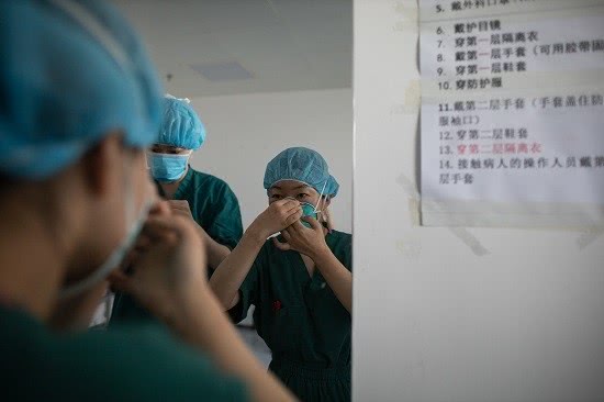 2月20日,高峰值班。他得到通知,当天有两例病人需要插管。经过与主治医师沟通,决定在上午进行。“敢死队”护士先在病房内准备工具、药品,然后通知高峰准备。