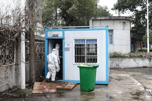 2月26日,湖北省武汉市,几名医疗废物处理员在医疗垃圾暂存点搬运。中青报·中青网记者 赵迪/摄