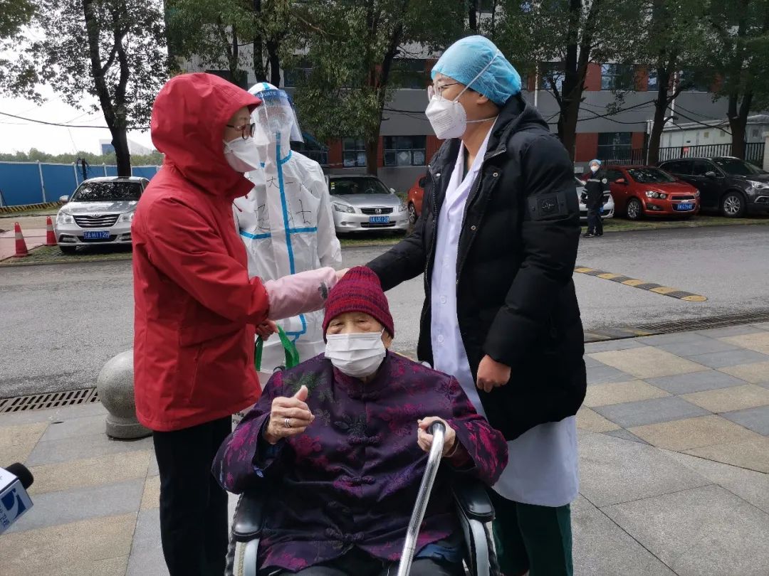在97岁的付女士的感谢声中,协和医院的转运工作人员缓缓将她抱起,放入负压救护车送回家里进行隔离观察。1月29号入院,到现在正好一个月。