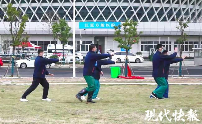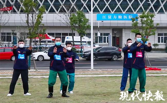 " 野马分鬃、白鹤亮翅、手挥琵琶 ……"2 月 27 日上午,武汉江夏区大花山方舱医院外的大草坪上,5 名男护士流畅地完成了一套 " 简化六式太极操 " 演示。这次,他们不仅仅是在给方舱的患者教学,而是要录制一条视频,送给奋战在抗疫一线的工作人员。