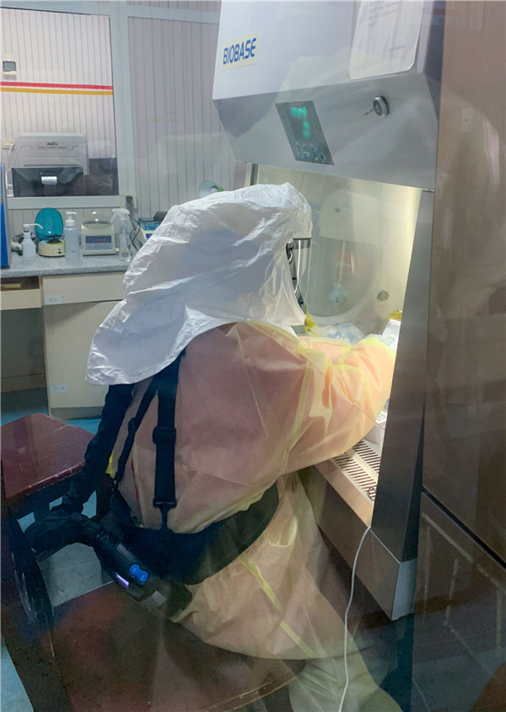 24岁的湖北恩施州民大医院二级生物安全实验室检验技师田佳佳在做样本处理(资料照片)。新华社发