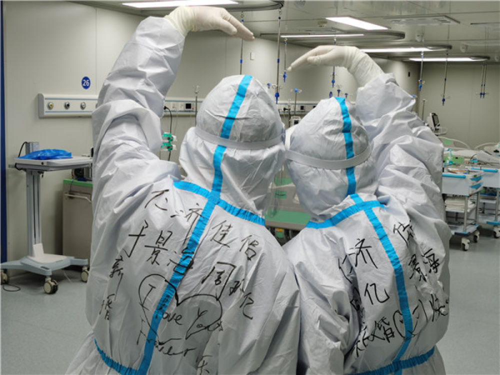 他们还会在防护服上创意手写,白色的防护服成为青春最酷的留白:“奥利给,精忠报国,疫情结束、我娶你u2026u2026”用俏皮的话语为新时代中国青年代言。