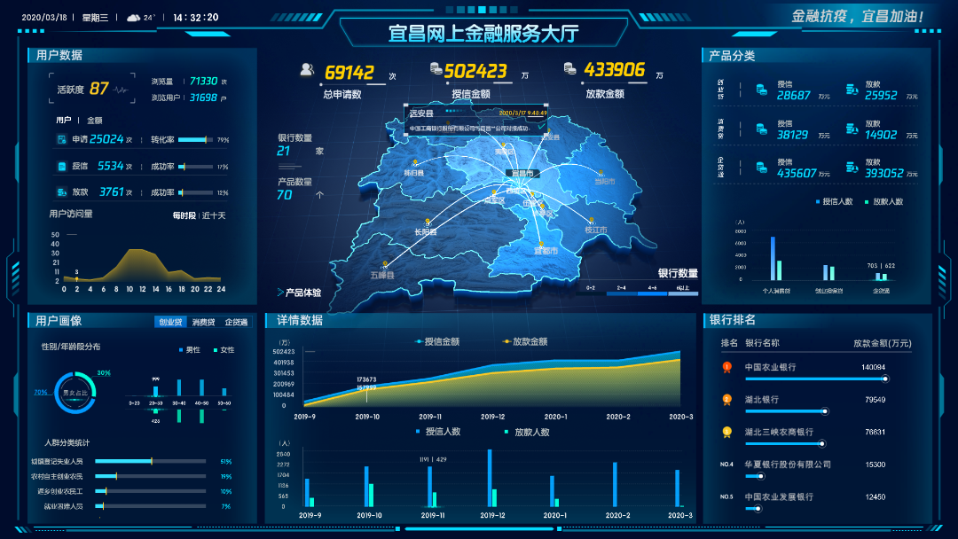 让广大银行能授信、敢放贷的底气,来自宜昌网上金融服务大厅的大数据“增信”功能。去年5月,作为全国首创的开放共享、综合服务、全类别展示、全流程对接、市场化运作的互联网金融综合服务平台,宜昌网上金融服务大厅上线运行,在湖北省率先打通水、电、气、税等30多类涉企数据的部门壁垒,用政务大数据为企业精准“画像”增加信用。