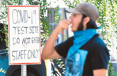 7月17日,一名男子在美国洛杉矶一处新冠病毒检测站进行检测。新华社/法新