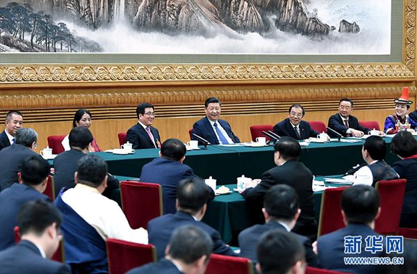 3月7日,中共中央总书记、国家主席、中央军委主席习近平参加十三届全国人大二次会议甘肃代表团的审议。 新华社记者 谢环驰 摄