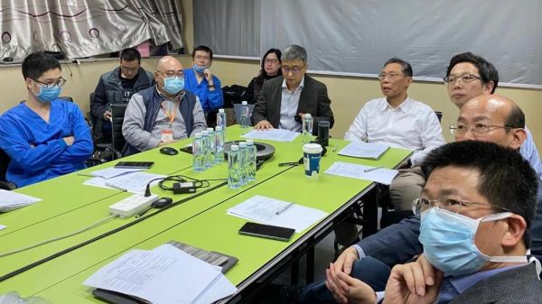 3月12日晚在广州医科大学附属第一医院,钟南山院士和医院重症监护团队与美国哈佛大学医学院及美国重症监护方面的专家进行多方视频连线。图片来源:央视新闻