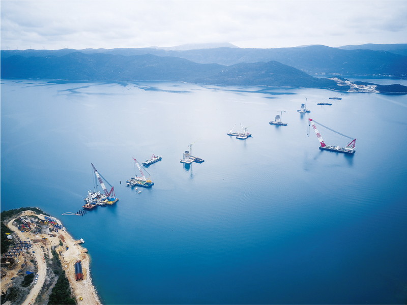 克罗地亚佩列沙茨跨海大桥由中国企业联合体承建,大桥开通后,不仅将大大改善交通难题,对推动当地经济发展和民生改善等都将具有十分重要的意义。2018年施工至今,该海域的海豚没有受到工程打扰,它们在水中跳跃嬉戏的视频不时出现在社交网络上。图为2020年2月1日佩列沙茨跨海大桥施工现场。新华社记者 高磊/摄