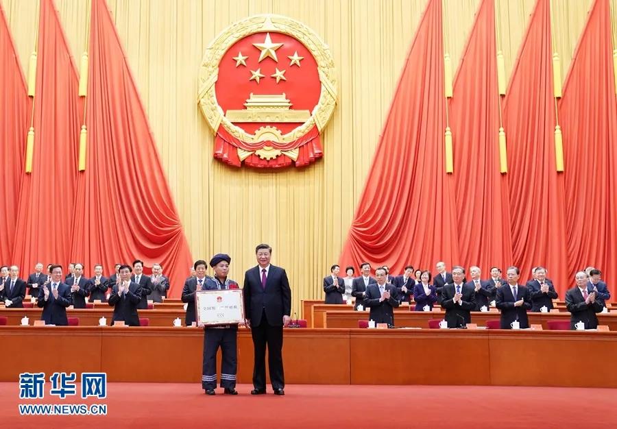 2021年2月25日,全国脱贫攻坚总结表彰大会在北京人民大会堂隆重举行。中共中央总书记、国家主席、中央军委主席习近平在大会上发表重要讲话。新华社记者 李学仁/摄