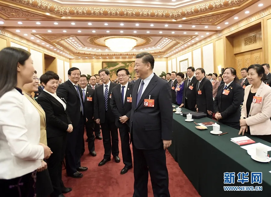 这是2018年3月8日习近平总书记同女代表亲切交谈。