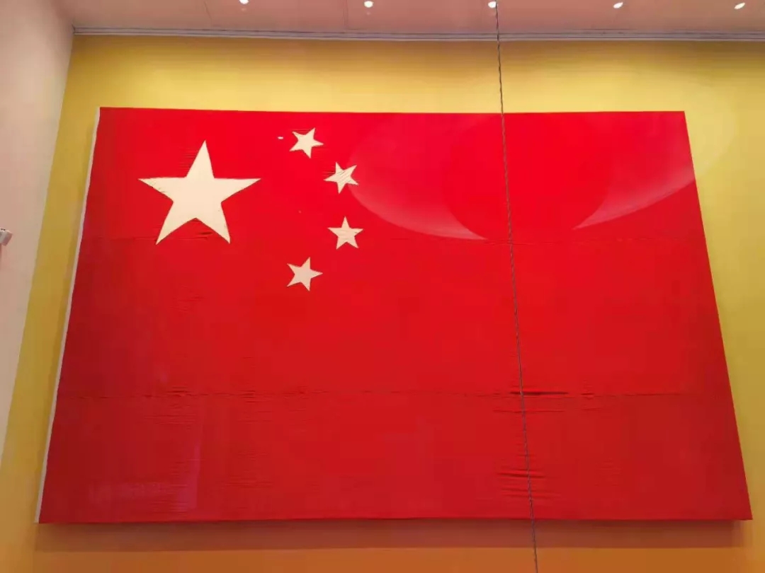 虽然历经风雨,但国旗依然鲜艳,岁月磨不掉她承载的那个光辉时刻的记忆。这面国旗由5幅红绸拼接轧制而成,5颗黄星由黄缎制成。五颗五角星及其相互关系,象征着中国共产党领导下的革命人民大团结。五星红旗图案设计者曾联松曾这样介绍说,每一颗小五星的中心点都通过自己的一个星尖同大五星的中心点连成一线,显示出中国共产党是全中国人民的领导核心。