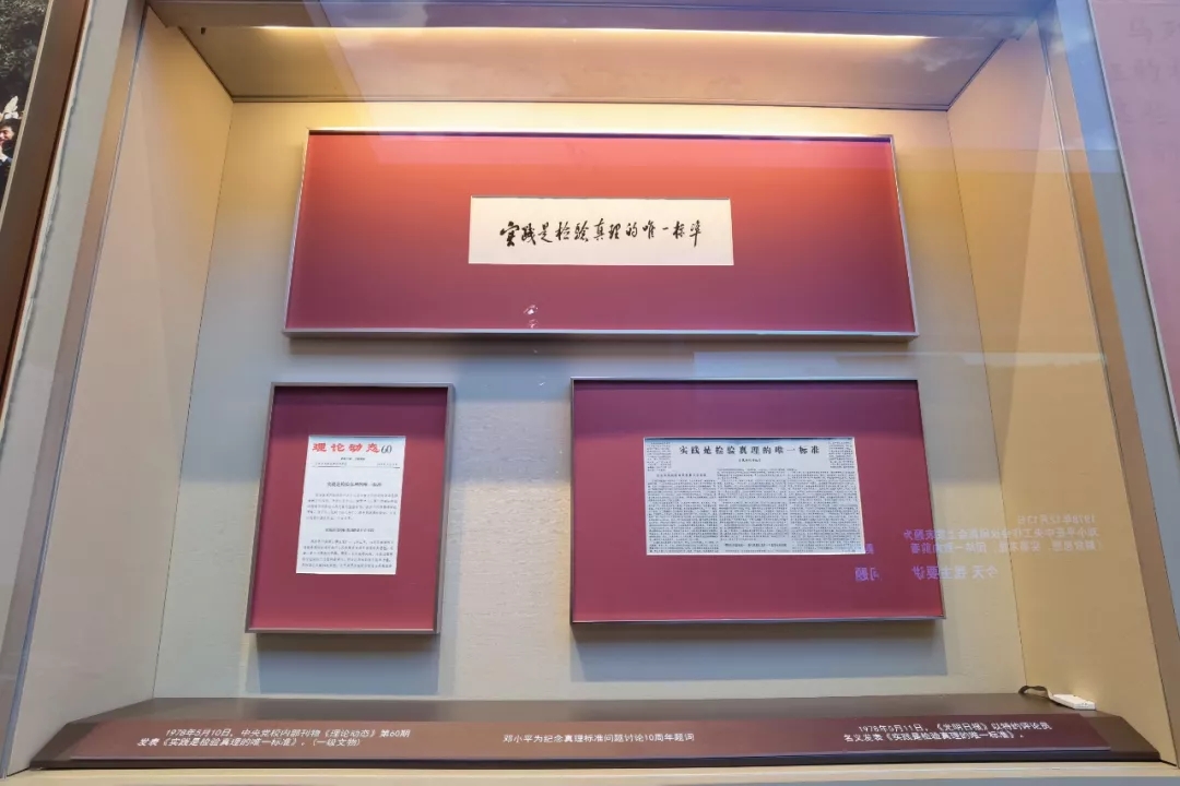 1978年5月10日,中央党校内部刊物《理论动态》第60期发表《实践是检验真理的唯一标准》(左下)。1978年5月11日,《光明日报》以特约评论员名义发表《实践是检验真理的唯一标准》(右下)。一场关于真理标准问题的大讨论迅速在全党全社会展开,这场深刻而广泛的思想解放运动,成为正本清源、拨乱反正和改革开放的思想先导。上方是邓小平同志为纪念真理标准问题讨论10周年题词。 求是记者 刘名美/摄