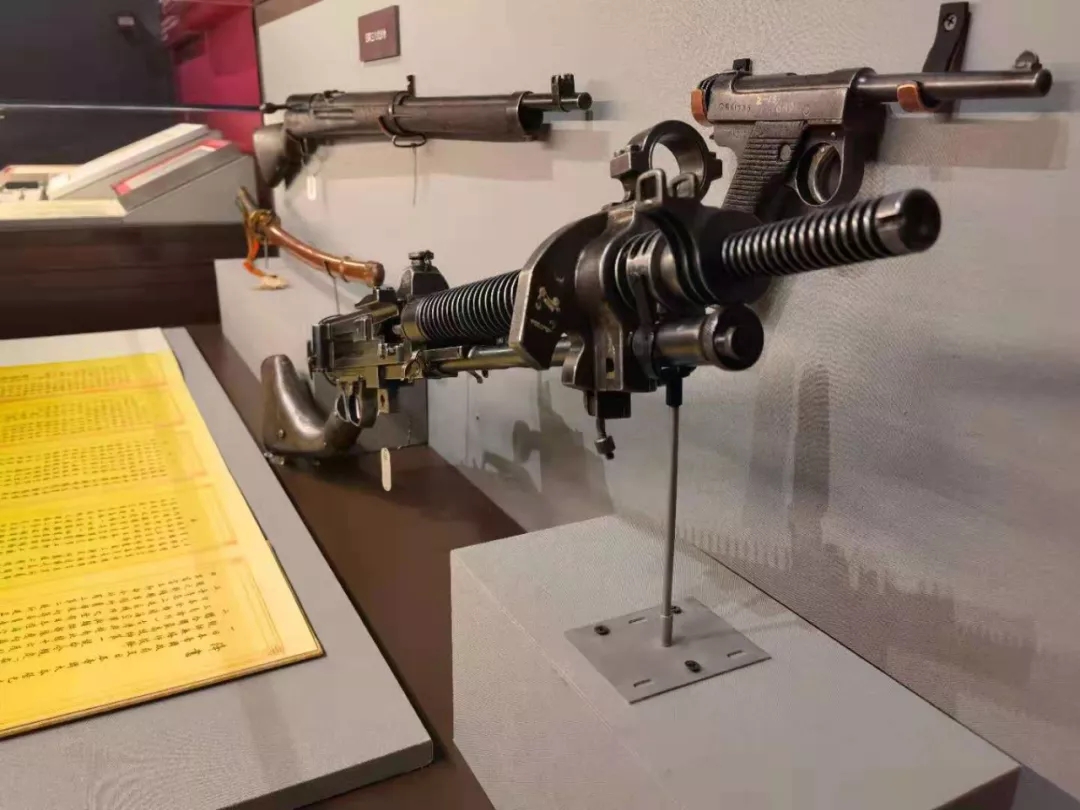 “这就是‘歪把子’。”6月18日,习近平总书记指着一件抗日战争时期的机枪展品,深有感触地说,“日本人先用迫击炮、山炮打一通,然后用‘歪把子’‘三八式’冲锋。那时咱们和他们拼刺刀,伤亡比都是三比一、四比一。武器不行,牺牲很大。” 求是记者 刘名美/摄