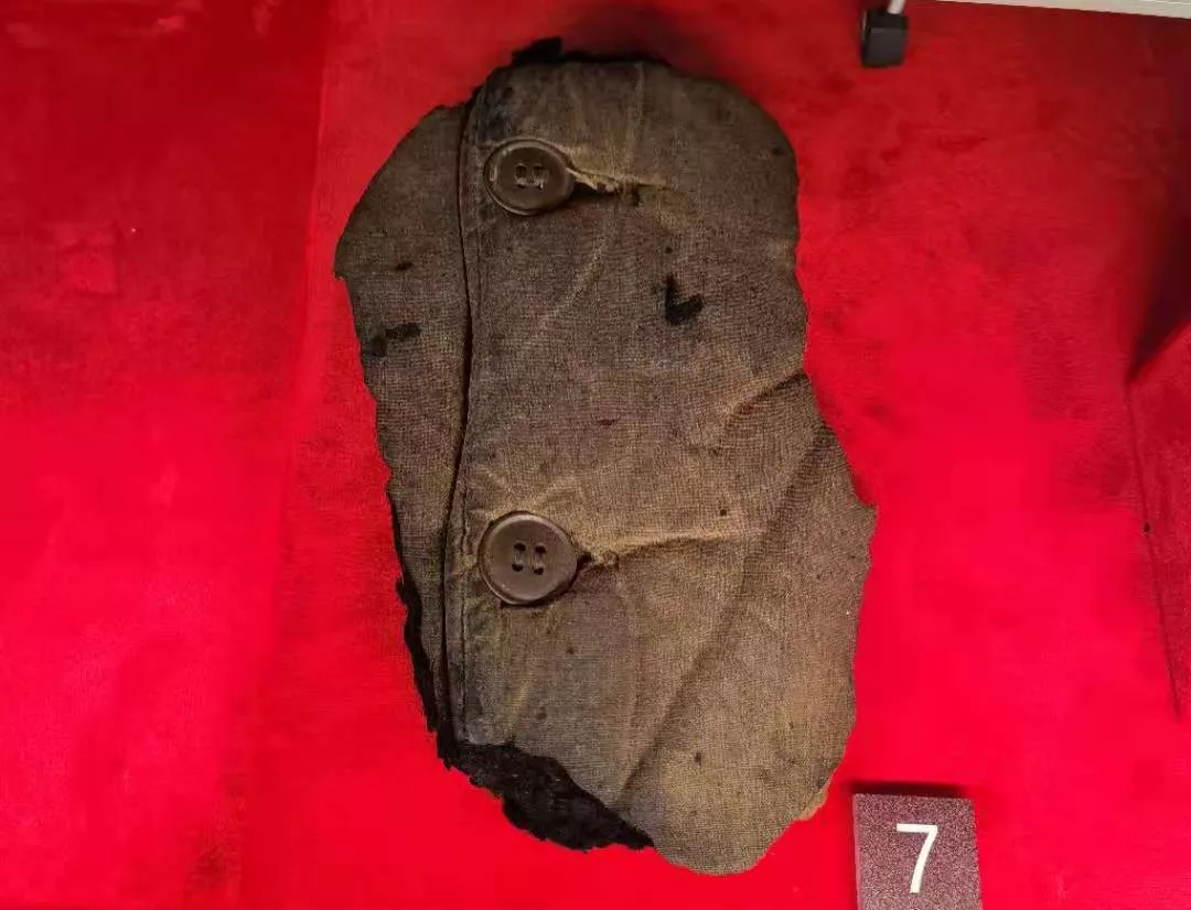邱少云同志牺牲后残留的棉衣碎片。1952年10月,抗美援朝战争的上甘岭战役打响。邱少云所在营利用黑夜作掩护,潜伏在一片开阔草丛中,准备第二天黄昏向敌阵地发起冲击。第二天中午,美军发射的燃烧弹落在了邱少云的潜伏点附近,火势迅速蔓延到他身上。为了不暴露目标,他放弃自救,任凭烈火烧身,直至壮烈牺牲,年仅26岁。邱少云用年轻的生命,兑现了他入党志愿书中“为了世界革命,为了战斗的胜利,我愿意献出自己的一切”的誓言。习近平总书记赞扬邱少云为“严守纪律、勇于牺牲的战斗英雄”。 求是记者 刘名美/摄