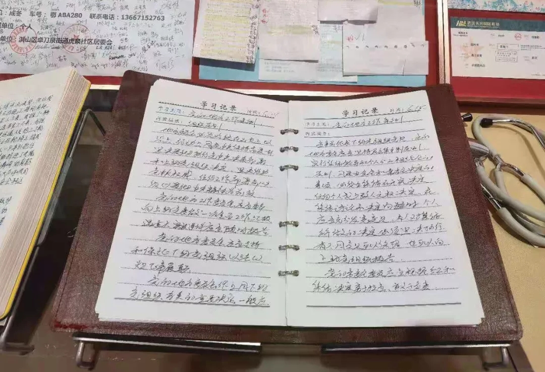 刘智明同志生前的党员学习笔记。刘智明同志生前系武汉市武昌医院党委副书记、院长。新冠肺炎疫情发生以来,他始终坚守在疫情防控一线,全力救治新冠肺炎患者,在工作中不幸感染新冠肺炎,于2020年2月18日抢救无效以身殉职。 求是记者 刘名美/摄