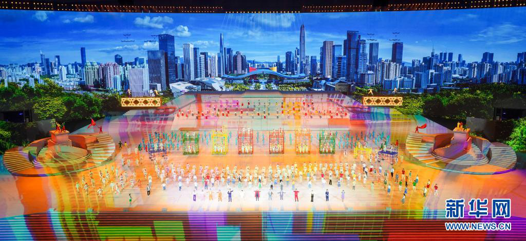 2021年6月28日晚,庆祝中国共产党成立100周年文艺演出《伟大征程》在国家体育场盛大举行。这是歌舞《特区畅想曲》。 新华社记者 陈晔华/摄