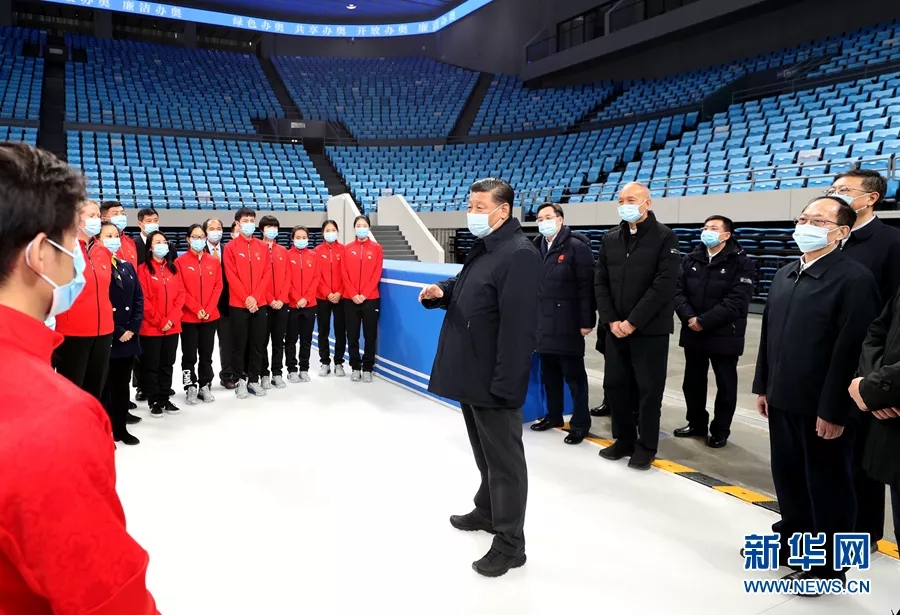 2021年1月18日至20日,中共中央总书记、国家主席、中央军委主席习近平在北京、河北考察,并主持召开北京2022年冬奥会和冬残奥会筹办工作汇报会。这是18日上午,习近平在位于北京市海淀区的首都体育馆考察。 新华社记者 姚大伟/摄