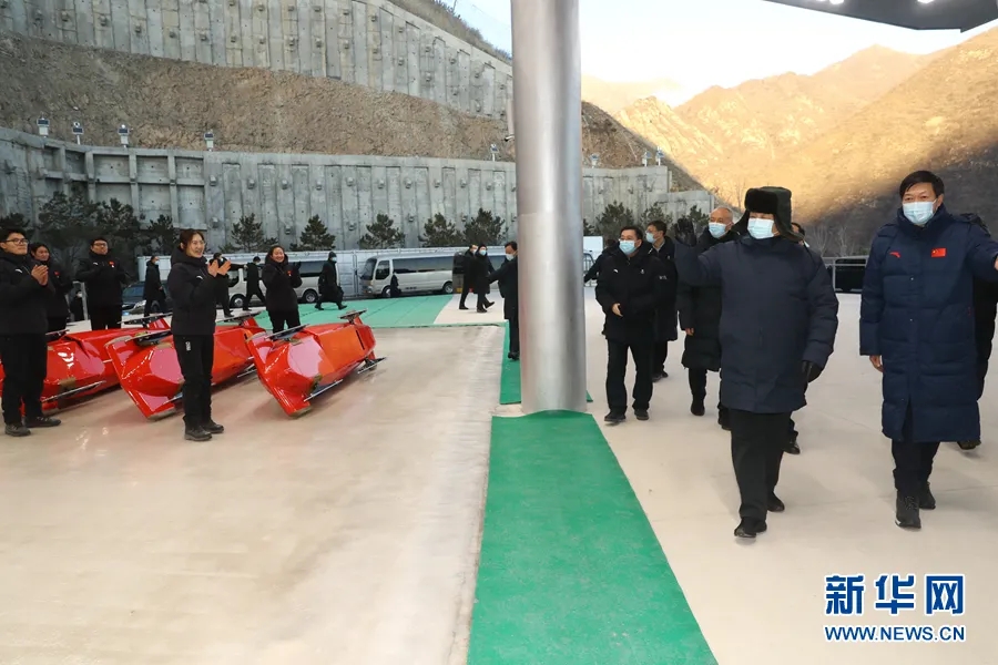 2021年1月18日至20日,中共中央总书记、国家主席、中央军委主席习近平在北京、河北考察,并主持召开北京2022年冬奥会和冬残奥会筹办工作汇报会。这是18日下午,习近平在位于北京市延庆区的国家雪车雪橇中心考察调研。新华社记者 鞠鹏/摄