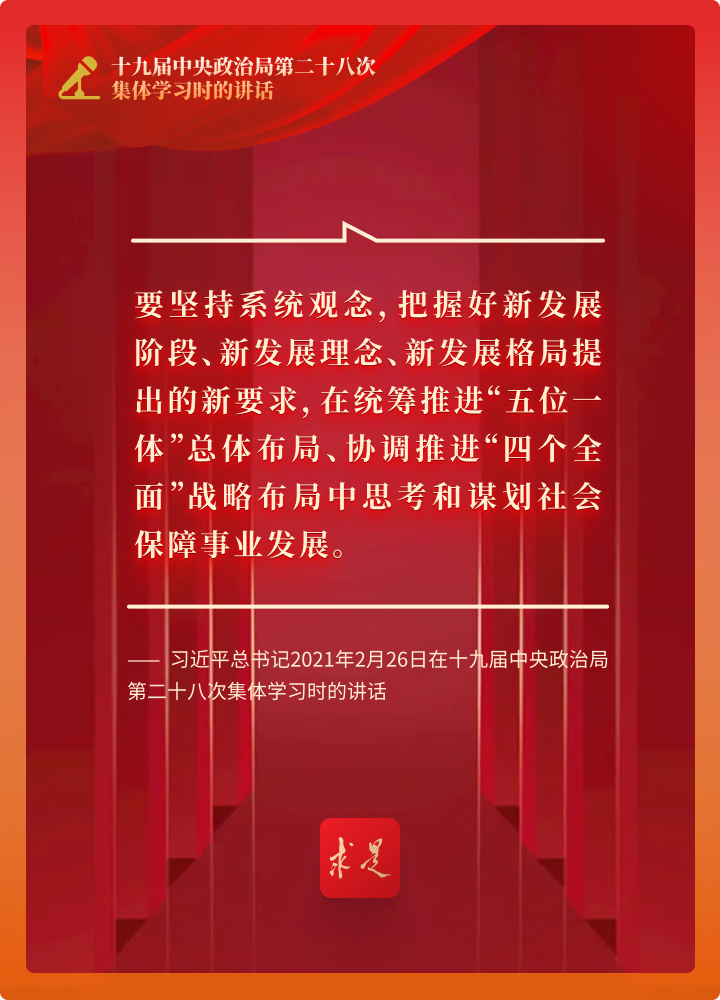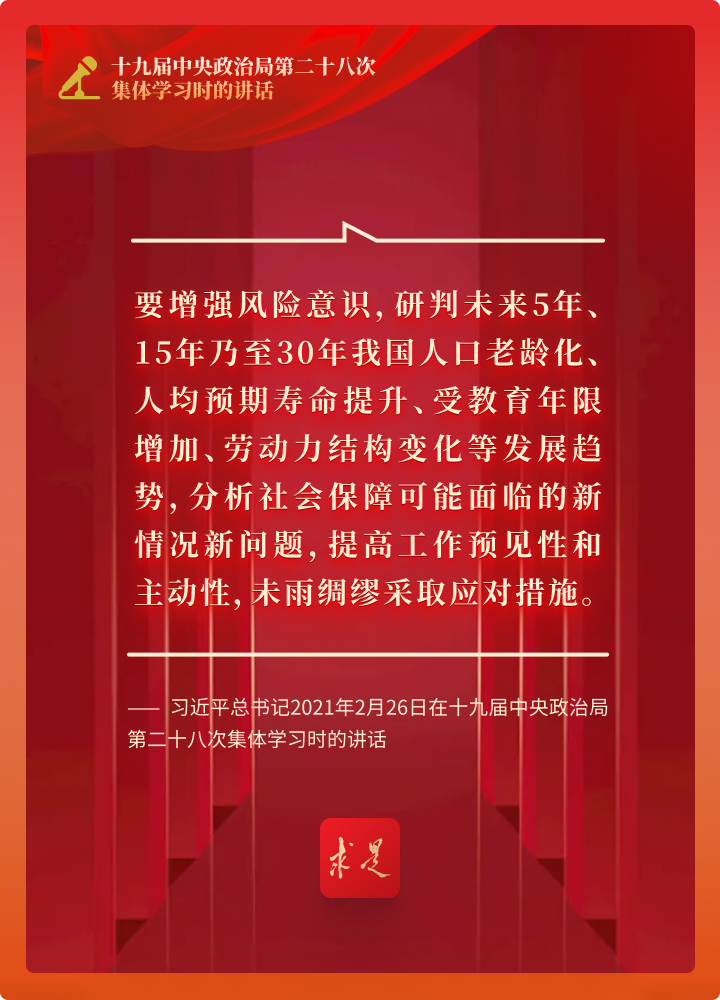 2022年第8期《求是》杂志刊发习近平总书记重要文章《促进我国社会保障事业高质量发展、可持续发展》。这是习近平总书记2021年2月26日在十九届中央政治局第二十八次集体学习时的讲话。在这篇重要讲话中,习近平总书记强调要科学谋划“十四五”乃至更长时期社会保障事业。