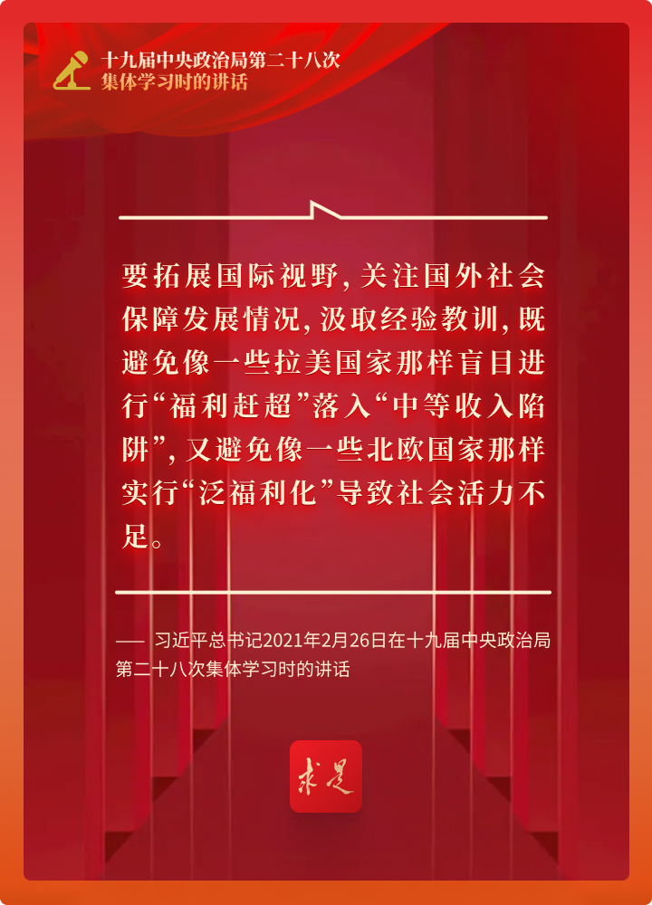一些拉美国家盲目进行“福利赶超”落入“中等收入陷阱”,一些北欧国家实行“泛福利化”导致社会活力不足等教训,要牢牢记取。