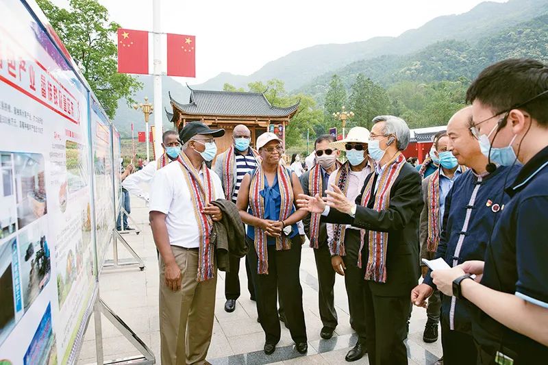 2021年5月7日,在福建宁德参加“中国减贫发展与人权事业研讨会”的13个国家驻华使节走访七都镇北山村。中新社发 池榕/摄
