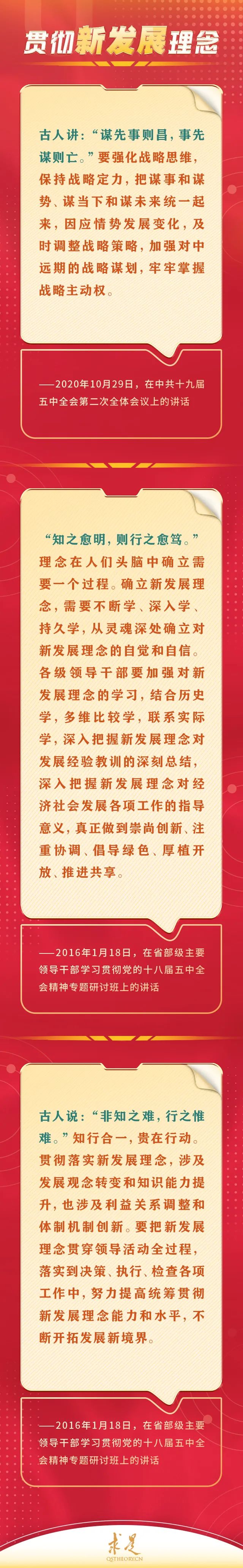 编者按:8月16日出版的第16期《求是》杂志刊发习近平总书记重要文章《全党必须完整、准确、全面贯彻新发展理念》,从“扎扎实实贯彻新发展理念”、“落实以人民为中心的发展思想”、“继续深化改革开放”、“坚持系统观念”、“善于从政治上看问题”五个方面,对完整、准确、全面贯彻新发展理念作出深刻论述、提出明确要求。党的十八大以来,习近平总书记围绕完整、准确、全面贯彻新发展理念发表一系列重要论述,在论述中精妙运用古代典籍、经典名句,以古喻今、启迪思想、激荡精神。一起来学习!