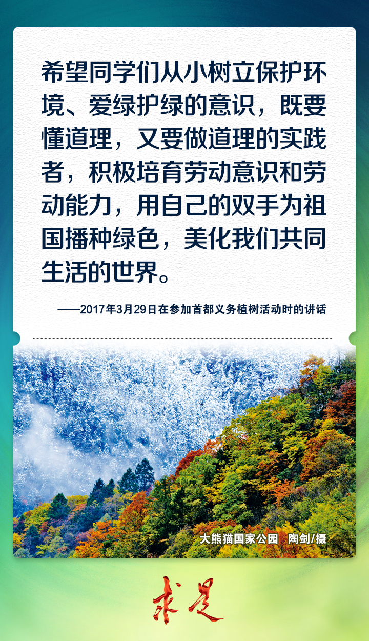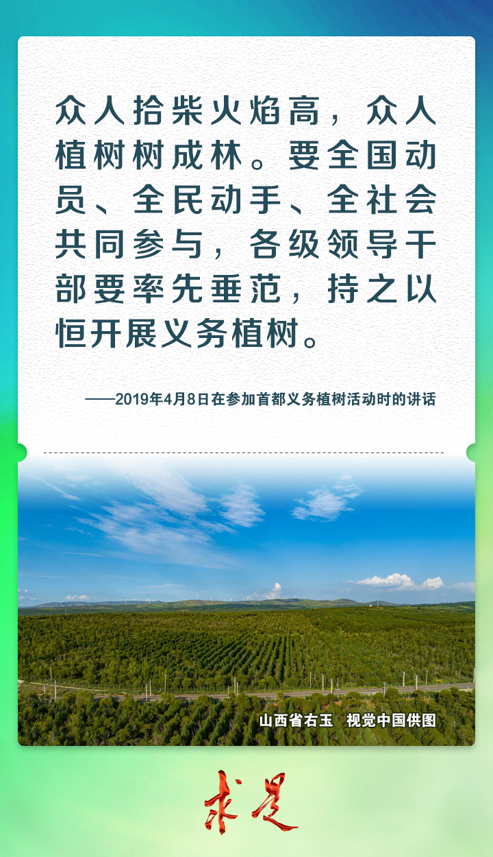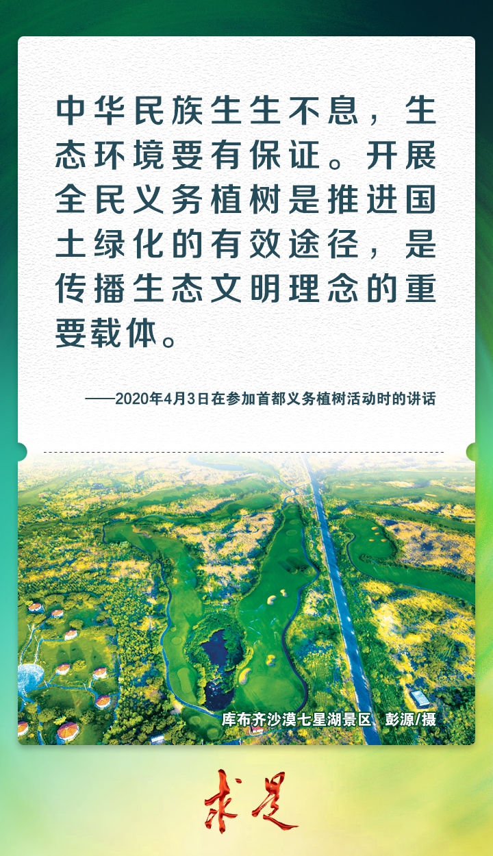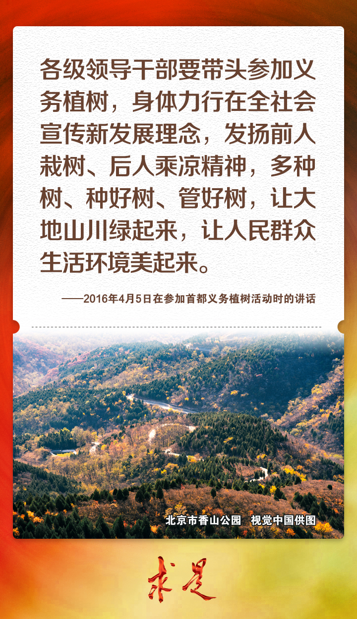 2023年4月4日上午,习近平总书记在参加首都义务植树活动时强调,今天,我们一起参加植树,就是号召大家都行动起来,既在广袤祖国大地上种下片片绿色,也在广大人民心中播撒绿色种子,共同迎接希望的春天,共同建设美丽中国。党的十八大以来,习近平总书记每年同干部群众一起参加首都义务植树,率先垂范、身体力行,大力倡导人人爱绿植绿护绿的文明风尚,引导人们树立植树造林、绿化祖国的责任意识,形成全社会的自觉行动,共同建设人与自然和谐共生的美丽家园。我们梳理了党的十八大以来习近平总书记参加首都义务植树活动时的重要讲话金句,一起来学习!
